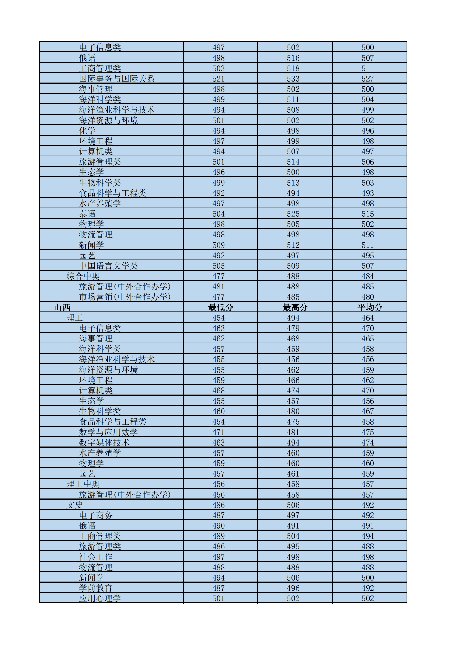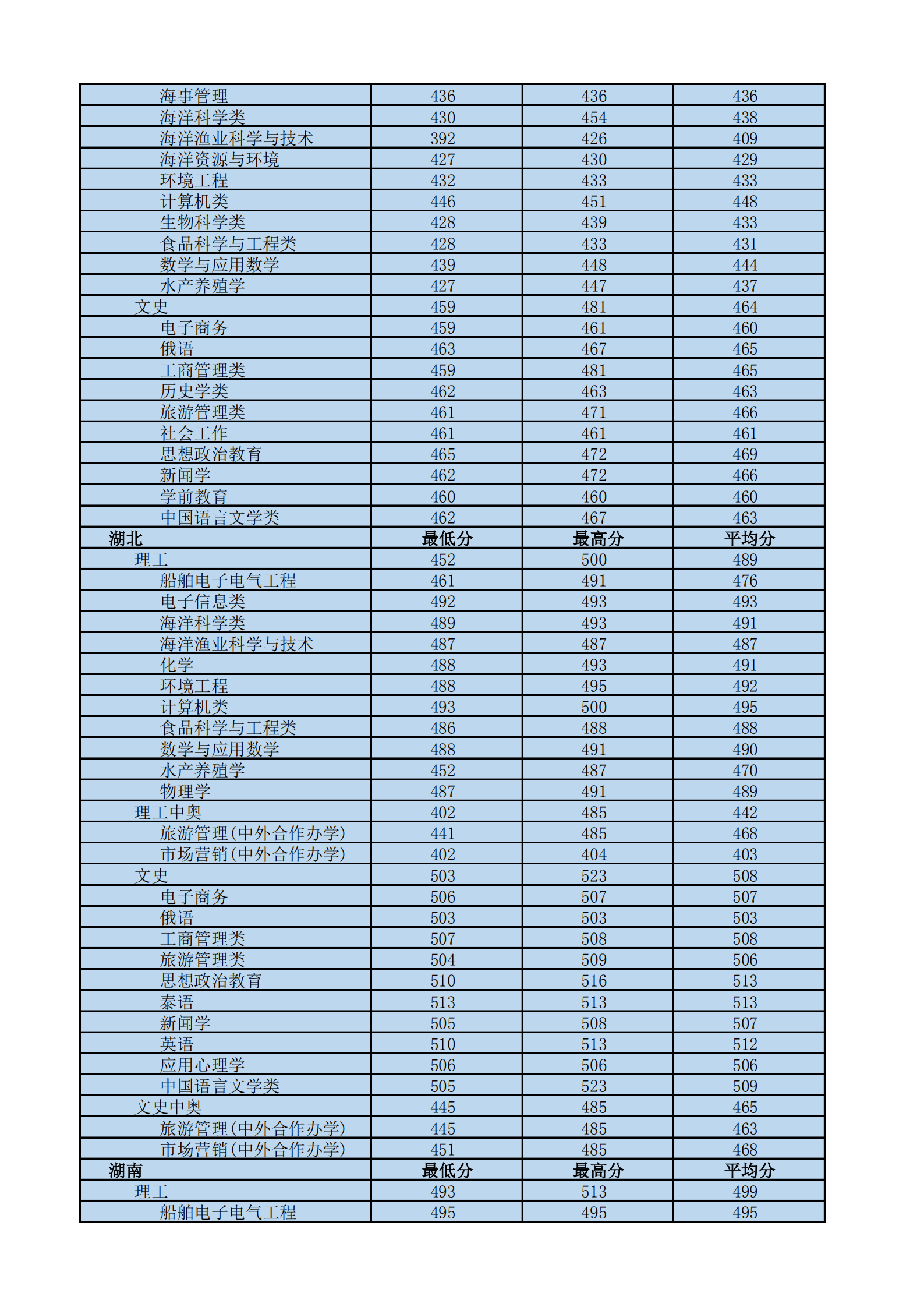 2020年海南热带海洋学院各省各专业录取分数