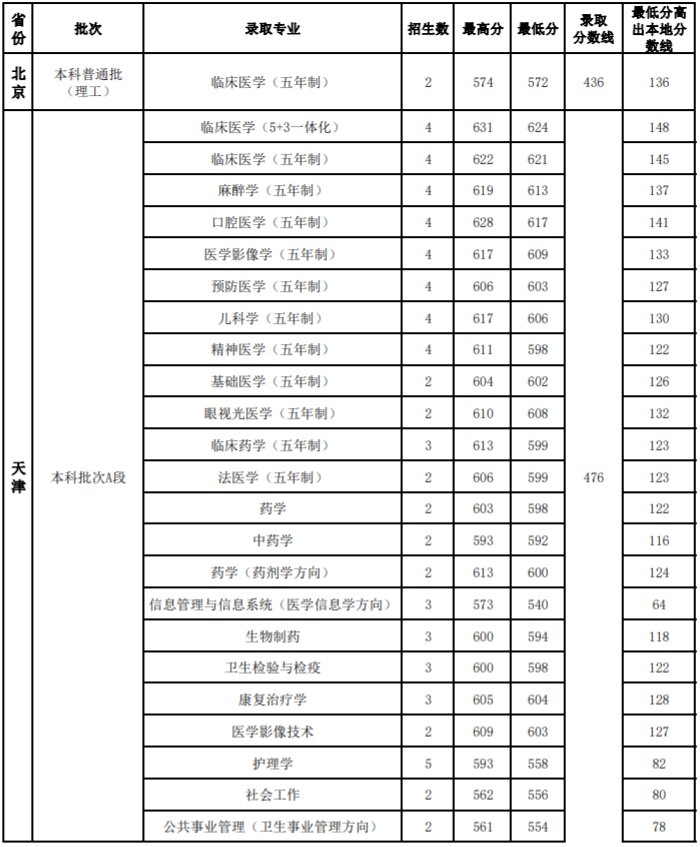 山西医科大学2020年本科分省市分专业录取情况汇总表