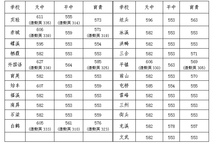 2018天台中考分数线(天台中学、平桥中学、育青中学录取分数线)