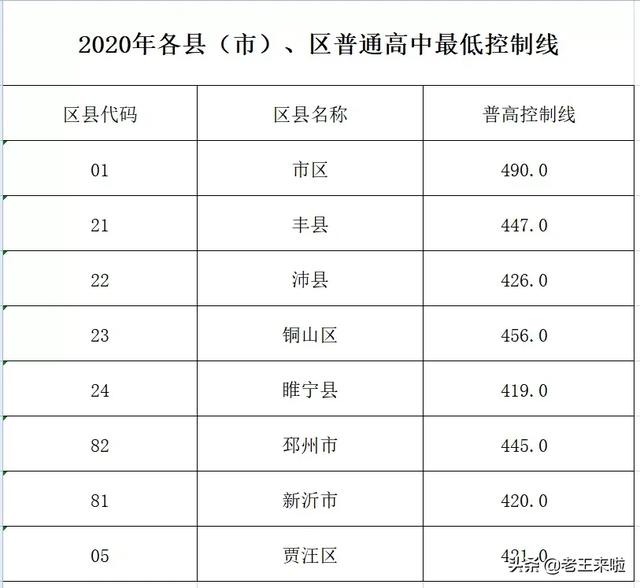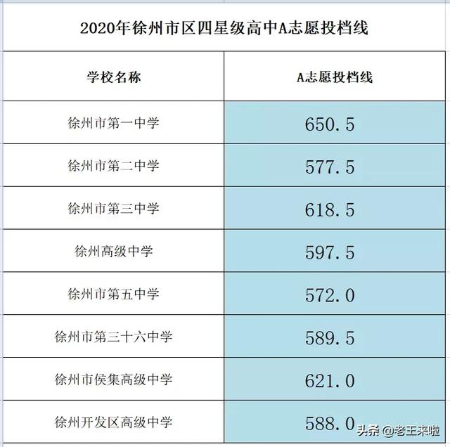 2020徐州市区四星级高中录取分数线