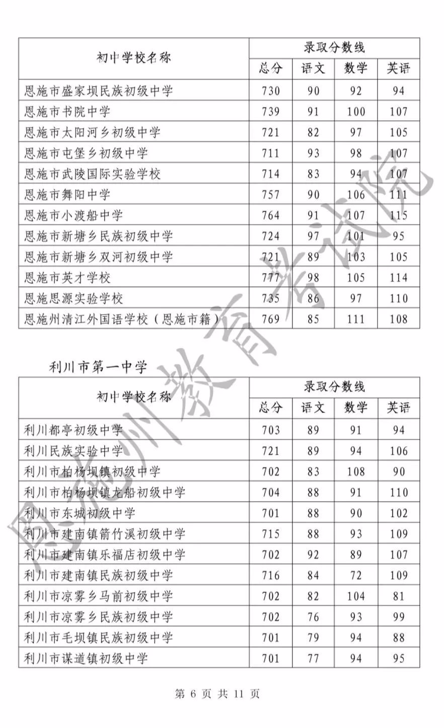 恩施土家族苗族自治州2022年中考高中招生分数线公布