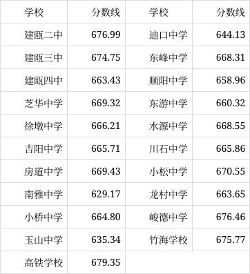 2022年南平市建瓯市高中招生录取分数线公布,具体如下: