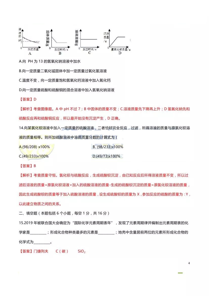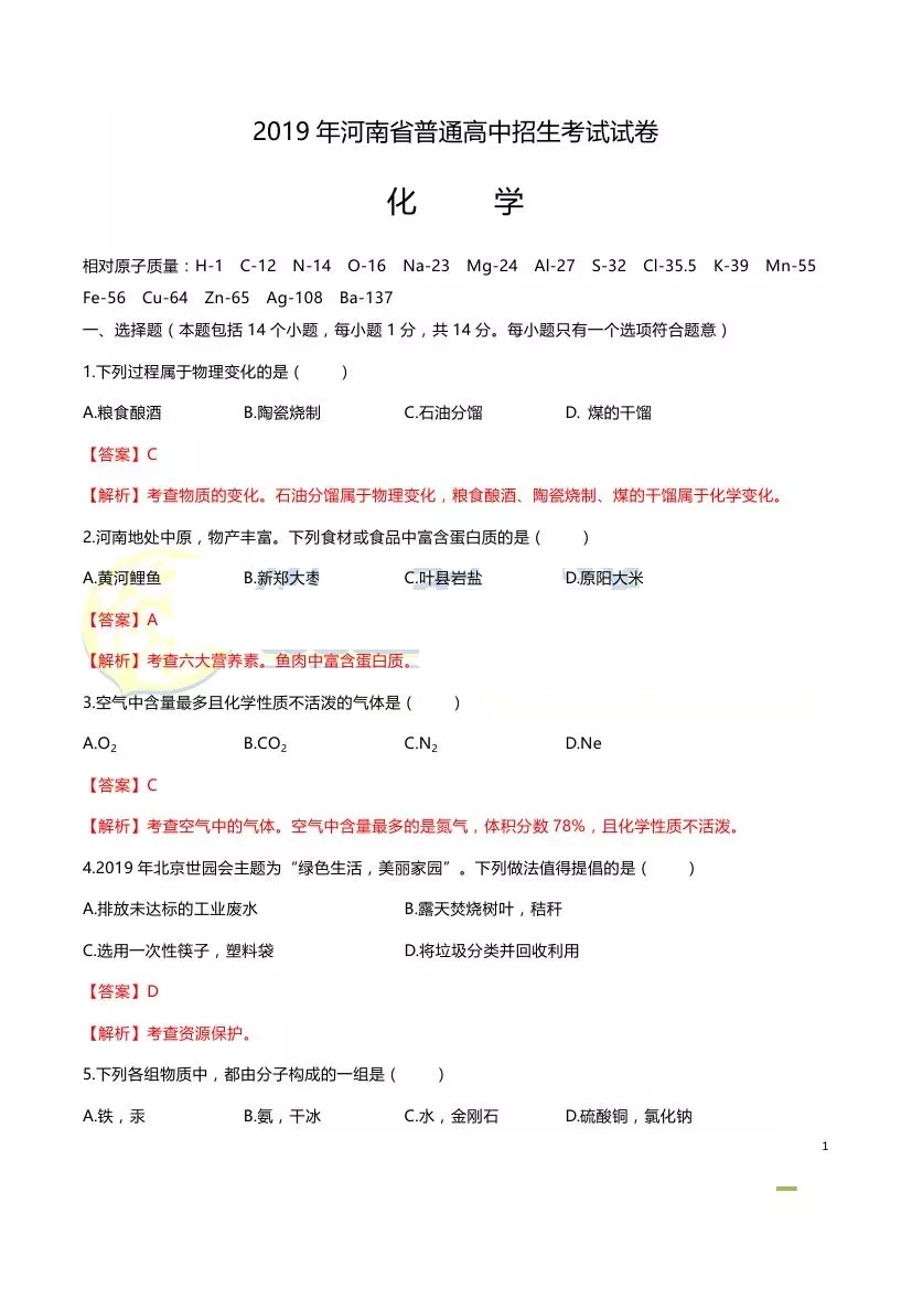 2019河南中考化学试卷试题及答案解析