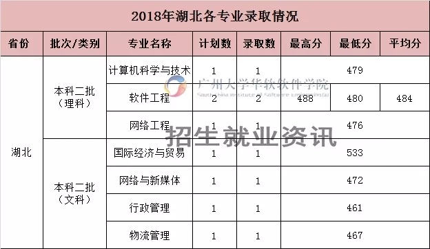 广州大学华软软件学院2018年录取分数线(全国分省分专业)公布: