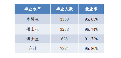 南开大学本科就业率为95.65%,硕士就业率为96.74%。